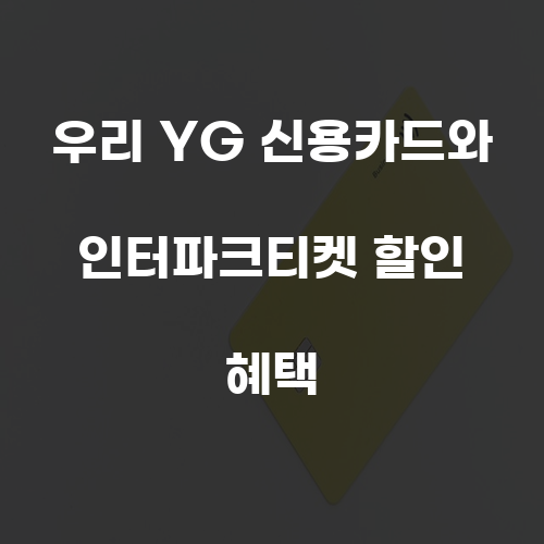 우리 YG 신용카드는 단순한 신용카드가 아닙니다. 이는 음악과 문화의 향연을 더욱 풍성하게 만들어 줄 수 있는 특별한 도구입니다. 인터파크티켓에서 제공하는 할인 혜택은 우리의 공연 관람 경험을 더욱 특별하게 만들어 주며, 이는 우리의 삶을 더욱 풍요롭게 만들어 줍니다. 음악 팬들과 공연 애호가들에게 있어, 우리 YG 신용카드는 그들의 문화 생활을 더욱 풍요롭게 만들어 줄 수 있는 소중한 카드입니다.