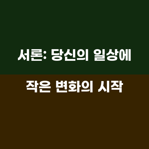 서론: 당신의 일상에 작은 변화의 시작